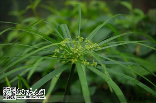 风车草的绿色苞叶在茎杆顶部展开,有人觉得它像一把撑开的绿色小阳伞,因而称其为“伞草”,而有的人则觉得它像是一个个绿色的小风车,又叫它“风车草”。另外,它的花也极具特色,与苞叶配合得极为协调,如同在绿伞上又绘制了一片花卉图案,令整个植株更添风采,韵味十足。
