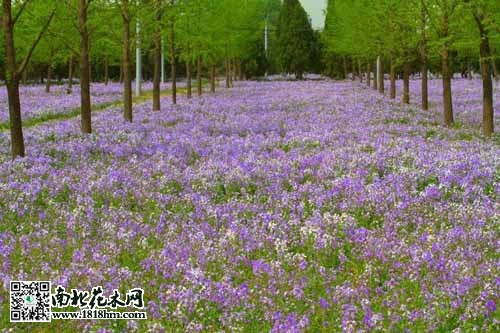 四十年前。春寒料峭的二月,在路旁、田边或荒坡上,二月兰随处可见。在春风浩荡中绽开着兰紫色的或淡红色的小花,那青绿色的茎叶,心形的叶片,与花儿的色调搭配得鲜明突出、浑然天成。她的花枝是自下而上开放的,如芝麻开花节节高。二月兰耐寒性强,每到冬季绿叶铺地,煞是好看。