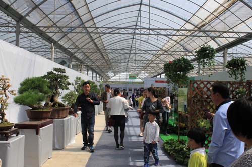 国庆长假,沭阳国际花木城的中艺四季花卉盆景大棚里,老板鲍俊中忙得不亦乐乎,沭阳花木节的召开,给他带来了不错的收益,每天起码有万元进账。
